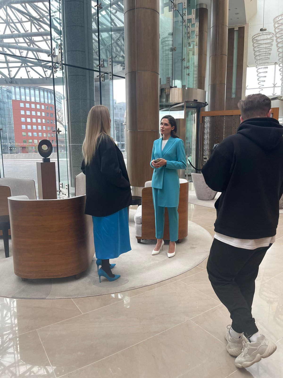 Галерист Полина Аскери в костюмах VASSA&Co из коллекции SS 2022 и FW 2022-23 на съемках передачи "Selfmade" для LIS CHANNEL